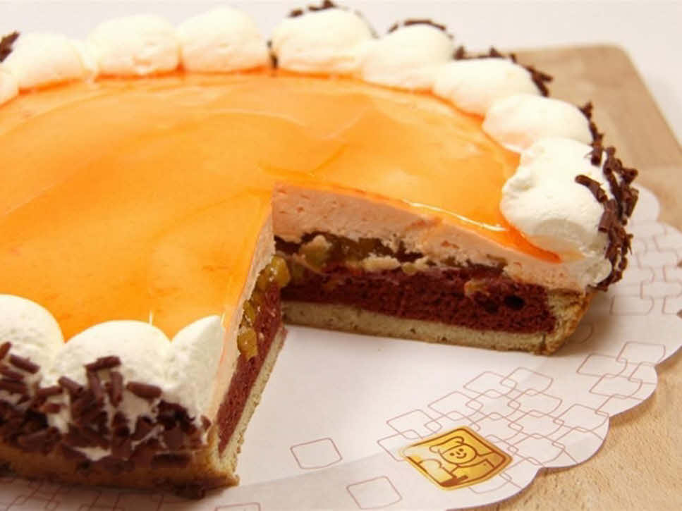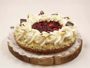 Eine überraschend leckere Herbstkombination! Probieren Sie den herrlich weichen Wiener Boden mit Kuchen, garniert mit Erdbeeren und Kirschen. Ein wahrer Genuss! Für mindestens 5 Personen. Auch als Stück erhältlich.